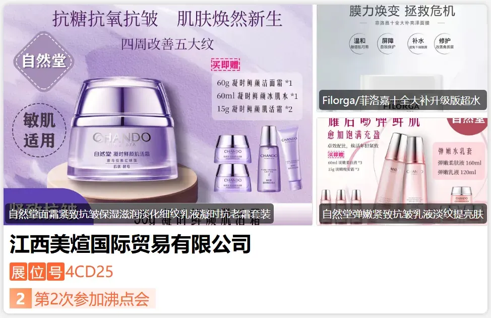 江西美煊贸易有限公司专注于服务全球优质美妆品牌,致力于为渠道和消费者发掘独特美妆体验,凭借敏锐市场洞察、***供应链与全渠道赋能,与线下核心连锁以及众多有影响力的私域平台建立了稳定的合作关系。美煊贸易是自然堂、珀莱雅、半亩花田等国内品牌的代理商,同时也有菲洛嘉,雅诗兰黛、兰蔻等国际大牌的供应链,我们支持一件代发,避免您有库存的风险,货源稳定,价格优势!!!-展位号:4CX04-