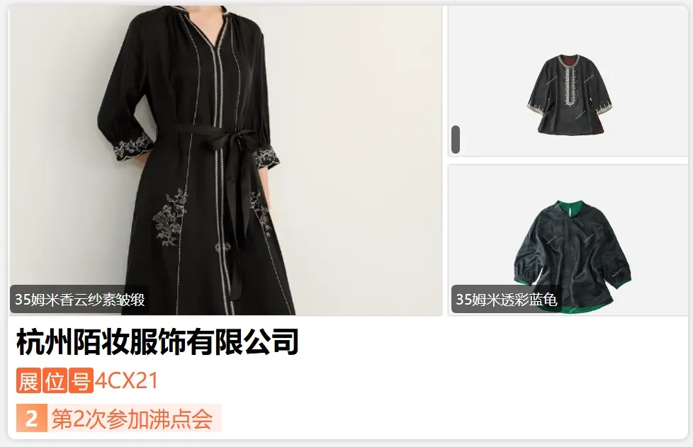 南宋丝府2020年正式创立。 以宋代美学为经旨,专注于古法香云纱的高端丝绸服饰品牌。深谙宋代美学的精髓——淡、雅、悦、柔,融入于产品的设计之中。致力于现代生活与华夏五千年美学底蕴的对话,再现殿堂级丝绸美学!品牌秉持着“传承宋韵,演绎时尚”的理念,打造出既具有传统文化底蕴又符合现代都市女性审美的丝绸女装。每一件“南宋丝府”的产品,都凝聚着品牌对传统工艺的尊重与传承,以及对现代时尚潮流的敏锐洞察。-展位号:4CY23-