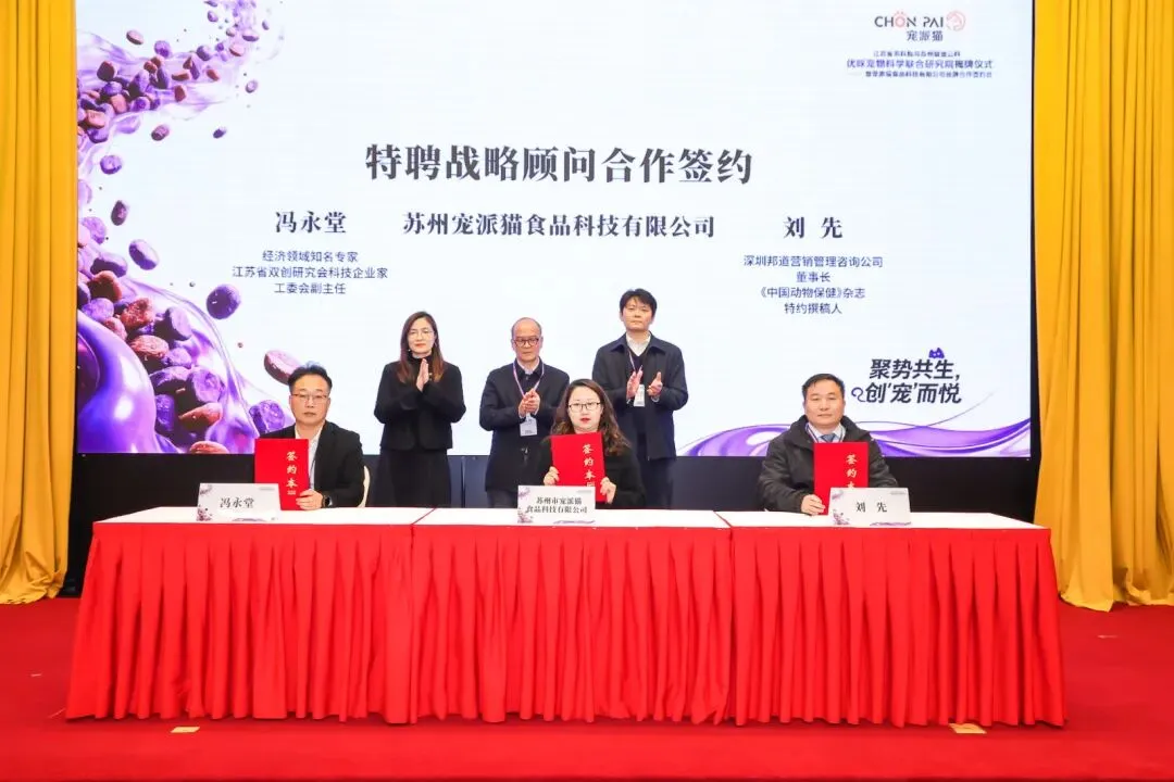 近日,江苏省农科院与苏州骏途云科共同发起的“优咪宠物科学联合研究院”正式揭牌,同步举办了宠派猫食品科技有限公司品牌合作签约会。这场汇聚“政企学研”多方力量的活动,标志着国内宠物食品行业在“产学研用”深度融合领域迈出了关键一步。