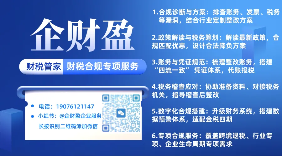 需要专属财税合规方案 立即联系:19076121147(电话 / 微信同号)