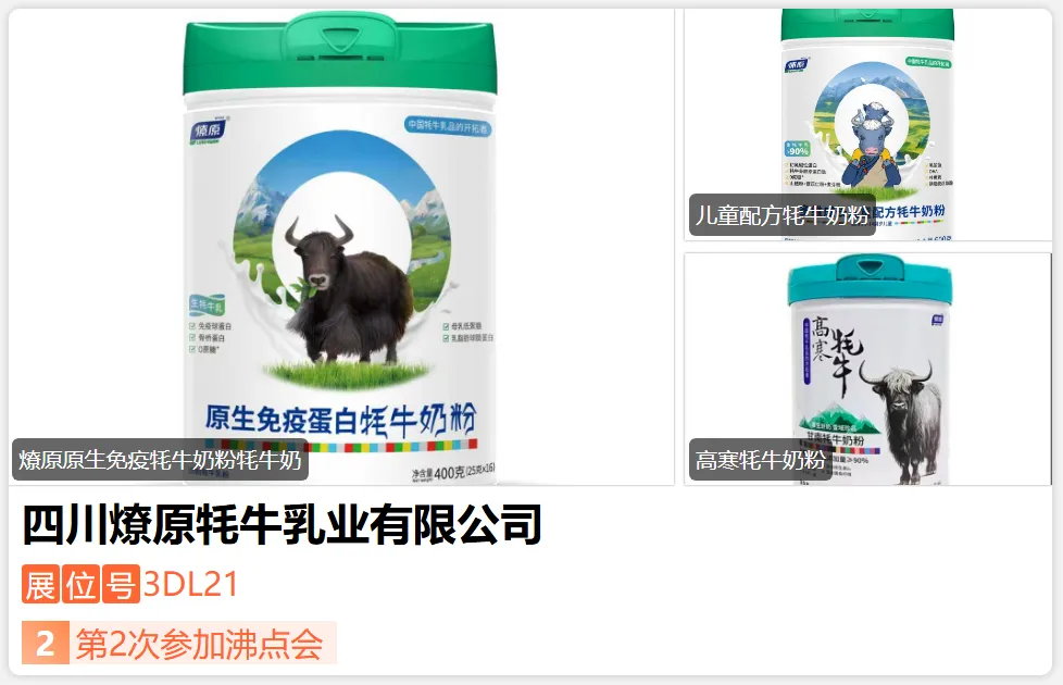 燎原集团成立于1953年,总部位于甘肃甘南藏族自治区,西部***端牦牛乳品生产企业,国家八大乳企之一,享有西北***家乳制品“中华老字号”称号,***将牦牛奶研制并生产为牦牛乳制品的企业,被誉为中国牦牛乳品行业的开拓者也是行业标准的制定者。该集团连续十年在牦牛奶粉销量上保持领先地位,已荣获“中国牦牛乳品开拓者”300余项荣誉奖项、“国家重点龙头企业”、“中华老字号”、“中国奶粉十大品牌”等多项殊荣。-展位号:3DG01-