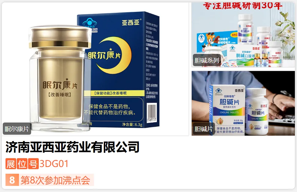 亚西亚药业成立于1993年,是专业的胆碱膳食营养品牌,拥有近32年胆碱生产和研发经验,主要产品包括:胆碱片,铁叶酸胆碱片,胆碱胶囊,胆碱口服液,锌硒胆碱口服液,胆碱咀嚼片,锌硒胆碱咀嚼片,DHA胆碱果冻,胆碱维生素C等多种产品以及维生素矿物质,药食同源等多种产品。-展位号:3DB26-