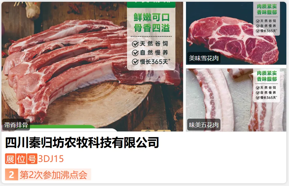 四川秦归坊农牧科技十年深耕黑猪全产业链,是集育种、养殖、加工、农旅于一体的创新农业企业,获市级 “万企帮万村” 先 进企业、省 级畜禽标准化场等多类 AAA 荣誉,为四川生猪产能调控基地;川东北市占45%,以品质立本,实力过硬值得信赖!-展位号:3DA25-