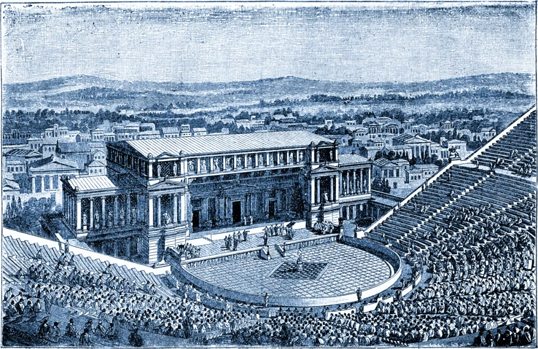▲ 在古希腊,剧场是城市中最重要的公共生活场地(图为古雅典狄奥尼索斯剧场场景想象 ©Stefano Bianchetti / Bridgeman Images)