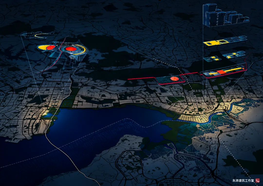 ▲ 朱涛工作室对深圳湾人才公园主展场+河套平行展场的愿景