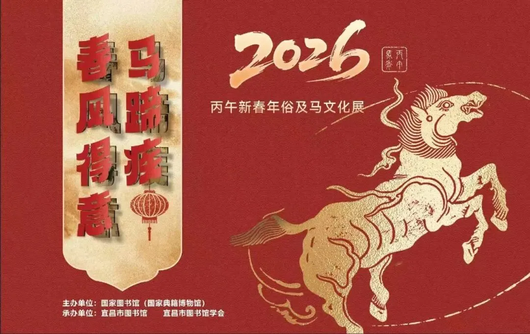 2026丙午马年新春的钟声即将敲响。在《全民阅读促进条例》正式实施后的第一个春节,为深入贯彻习近平文化思想,传承弘扬中华优秀传统文化,营造和谐温馨的新春氛围,宜昌市图书馆积极响应国家图书馆与中国图书馆学会组织开展的2026年“策马迎春 阅享新年”全国春节主题活动,特别推出“春风得意马蹄疾——丙午新春年俗及马文化展”与“百年花约 盛世报春——2026年宜昌报春花展宜昌市图书馆分会场”两大新春特展。