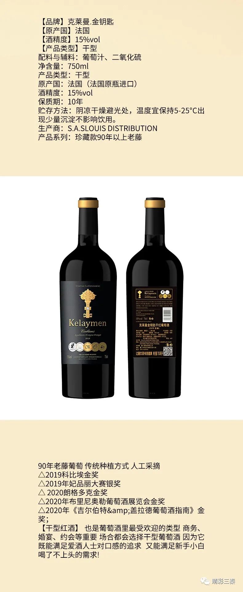 【乐家购物专供】克莱曼金钥匙干红葡萄酒
