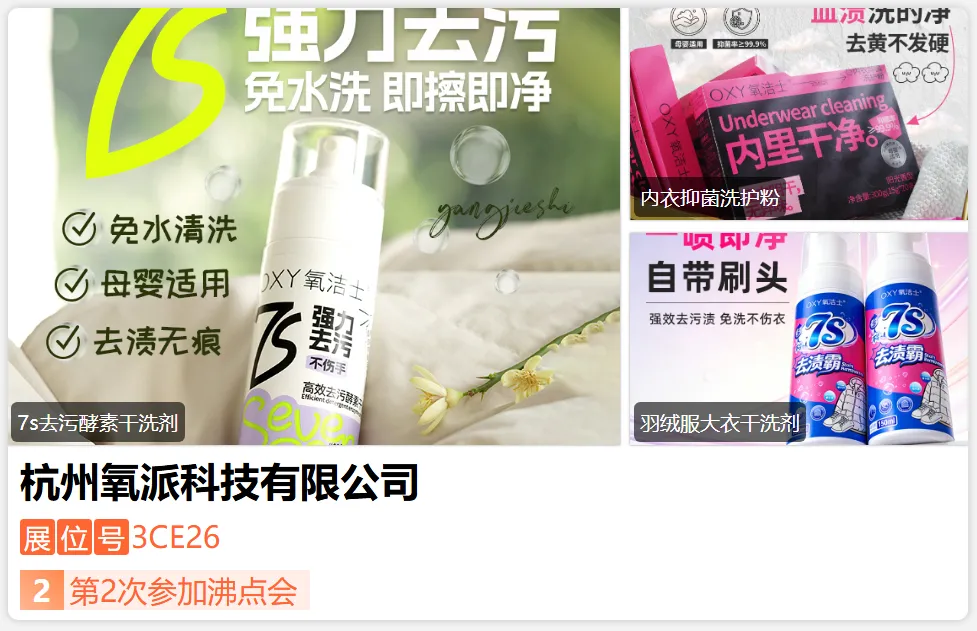 氧洁⼠为国际⽇化巨头提供原料,还原洗&复原洗开创者,国家SPC行业标准起草单位,全球产销量遥遥领先SPC生产企业;家级高新技术企业。专精特新“小巨人”企业,品质浙货出口领军企业浙江省绿色企业。-展位号:3CY03-