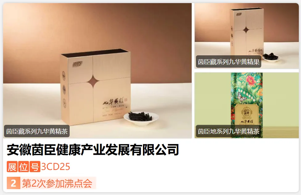 池州市九蒸晒食品集团有限公司,从事黄精种植、加工、销售及黄精产品研发一二三产融合发展的企业。秉持“集团有限多元化、子公司经营专业化”的发展战略,公司旗下设有4家控股子公司:池州市联众农业有限公司、池州市丰浩农业有限公司、池州市九华府金莲智慧农业有限公司、池州市适四时农业股份有限公司,销售黄精茶、黄精果、黄精丸、黄精原浆、黄精膏、黄精酒、黄精抱枣40余款产品。-展位号:3CL27-
