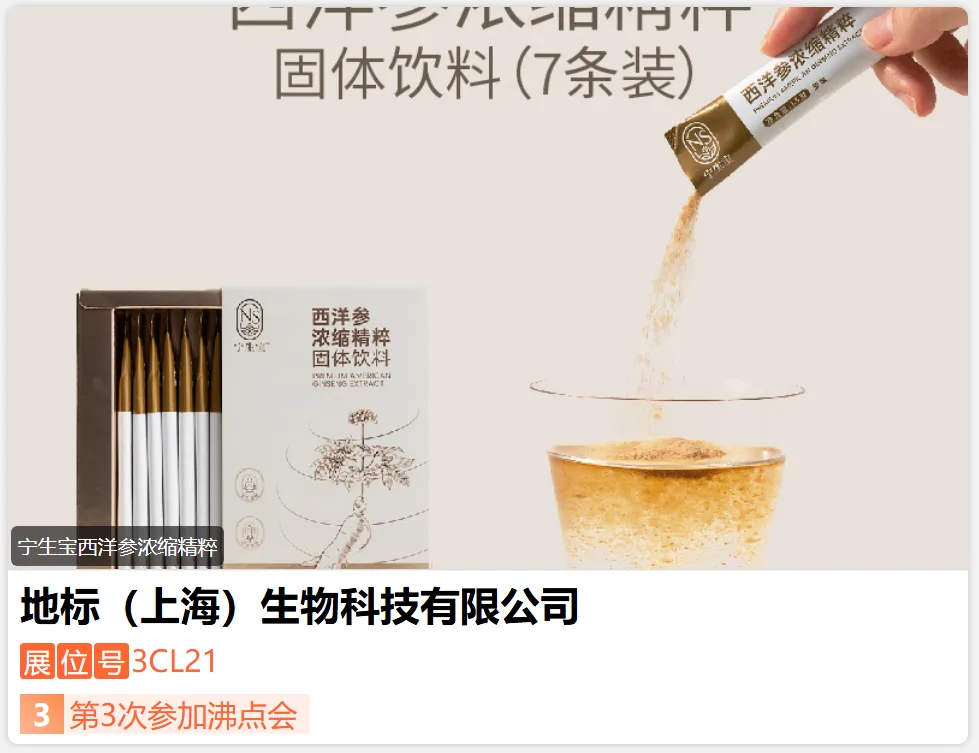 威海松龄中药,国家高新技术企业,山东省专精特新中小企业,专注人参西洋参生产13年,康宝莱(中国)、新时代健康产业等直销企业合作供应商,已通过中药GMP、ISO9001、ISO22000、HACCP等认证。2021年公司牵头起草制定了商务部直属中国医药保健品商会《西洋参提取物》国际商务标准,目前公司发挥中医中药方面的优势,开发出几款功效性西洋参复合饮,效果明显,欢迎莅临展位咨询。-展位号:3CE07-