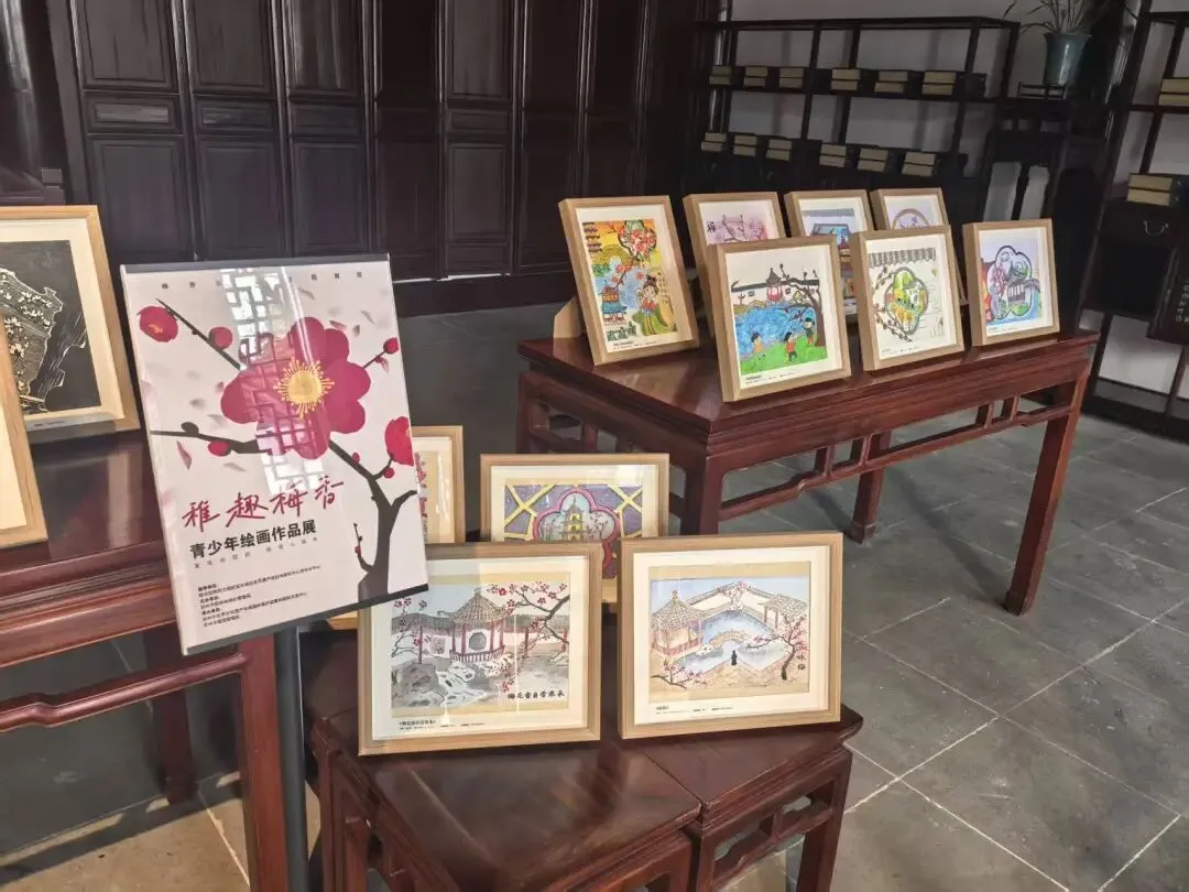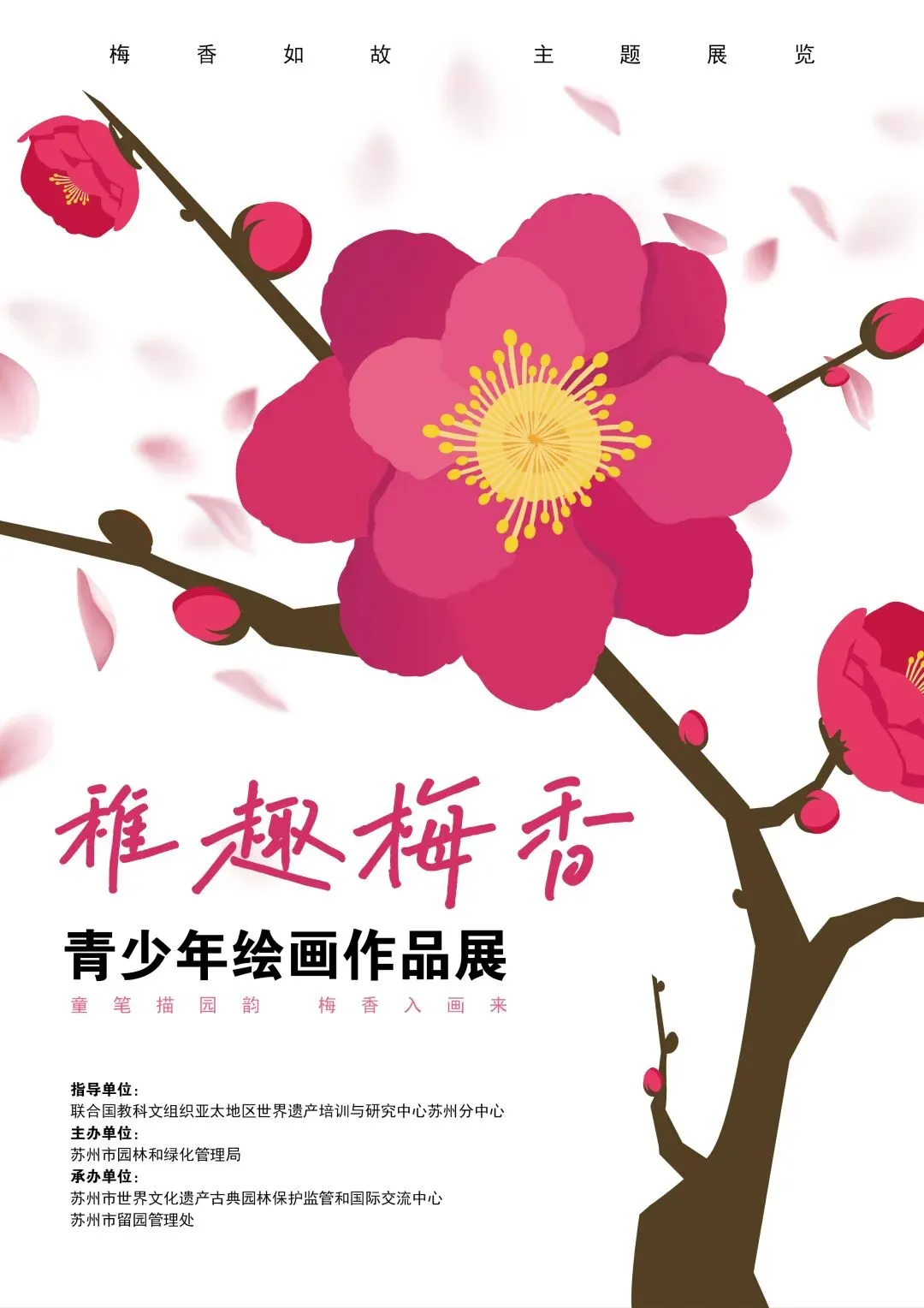 来自苏州中学、苏州外国语学校等多所世界遗产青少年教育基地的学子们,用国画、水彩、木版画等艺术形式,以童稚笔触勾勒园林雅韵、描摹梅花风骨。