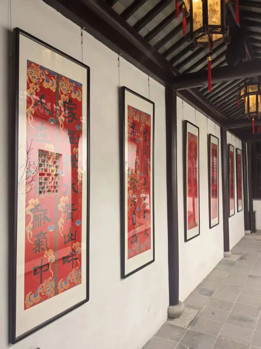 展览汇聚了五十副梅花、园林、春节等主题的对联、篆刻和字画佳作,满溢春节喜庆氛围。现场还设有写春联惠民活动与梅花年画印刷体验,为市民游客送上真挚的新春祝福。