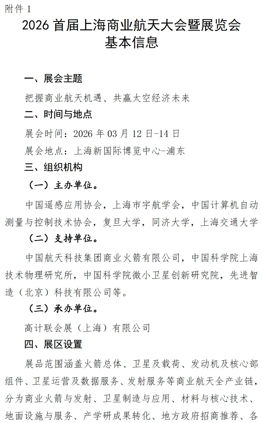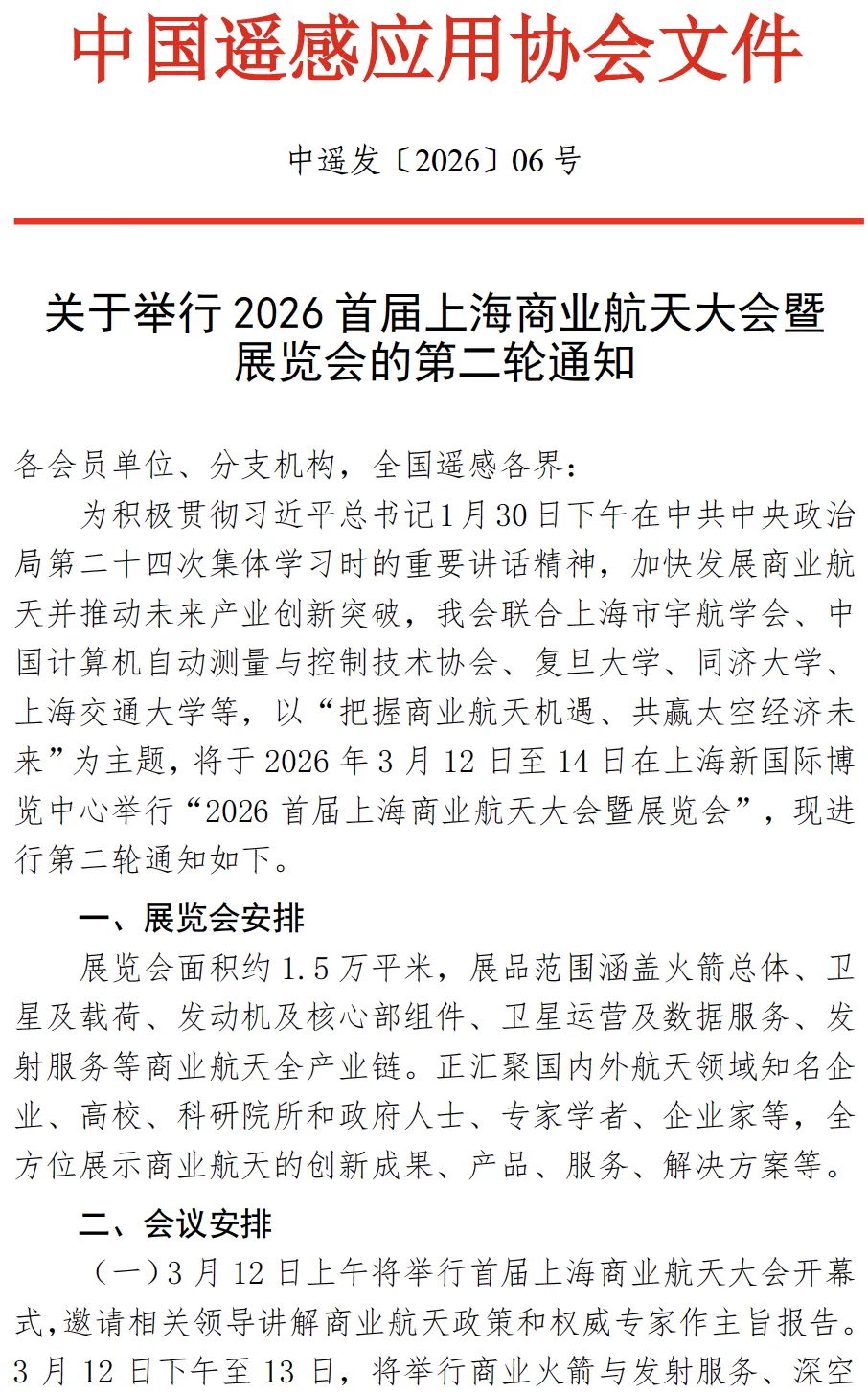 关于举行2026首届上海商业航天大会暨展览会的第二轮通知