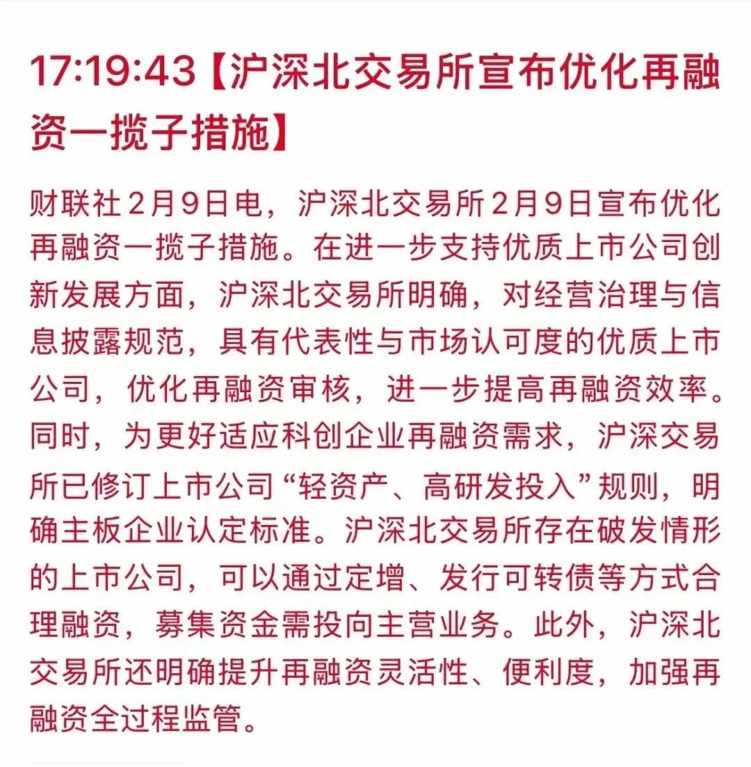 沪深北交易所一起推出了再融资优化措施。很多人看到“再融资开闸”就以为是全面放松,其实不然——这次新规的核心是“挑着支持”,不是谁都能拿到钱,而是精准把资金引向科技创新、优质龙头和绩优超跌股,同时严打“圈钱”乱象。今天用大白话讲透,1500字让你看清谁能受益、谁要小心。