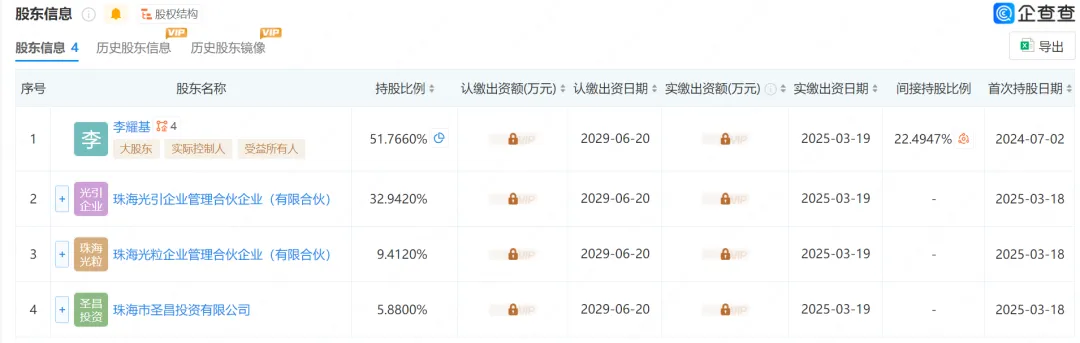 根据企查查显示,目前公司股权结构如上图所示。本轮天使轮融资由珠海科技产业集团旗下珠海科创投领投、珠海正方集团跟投。本文参考: