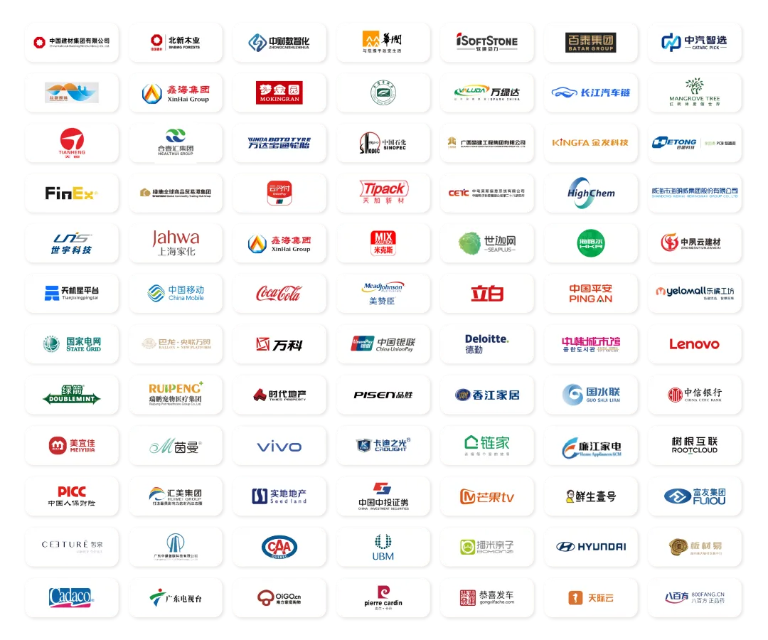 目前,数商云与中国建材集团、北新木业集团、中财数字化、华润集团、软通动力、百泰、中汽研、泉州国资、鑫海化工集团、梦金园黄金、湖北茶发集团、万绿达、长江汽车链、世纪联合科技、天恒商超、东方魂、合壹汇、万达宝通轮胎、中石化、广西路桥、金发科技、合通科技、凡易紧固件、绿地全球商品贸易港、云闪付、天加食品包材、日本高化学、中电莱斯、海明威、世宇科技、上海家化、优构思(UGOOS)、米克斯、积高实业集团等上百家国内外知名企业建立了长期的合作,通过电商供应链数字化产品解决方案帮助企业产业链上下游整合,并进行全面深度的数字化升级与转型落地,实现企业效益与效率的双轮增长,赢得了广大客户的信赖与赞誉。