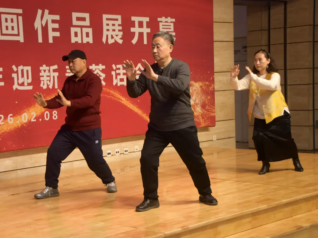 活动现场,学会会员首先带来精彩的文艺表演,奏响新春序曲。歌曲《春风十万里》《向天再借五百年》豪情满怀;原创诗词朗诵,抒发了对学会的真挚祝福;杨氏太极拳刚柔并济,与油画艺术的追求相得益彰。韩玉臣会长即兴登台带来方言表演,并以“希望寄托在你们身上”寄语全体创作者。现场掌声阵阵、气氛热烈。