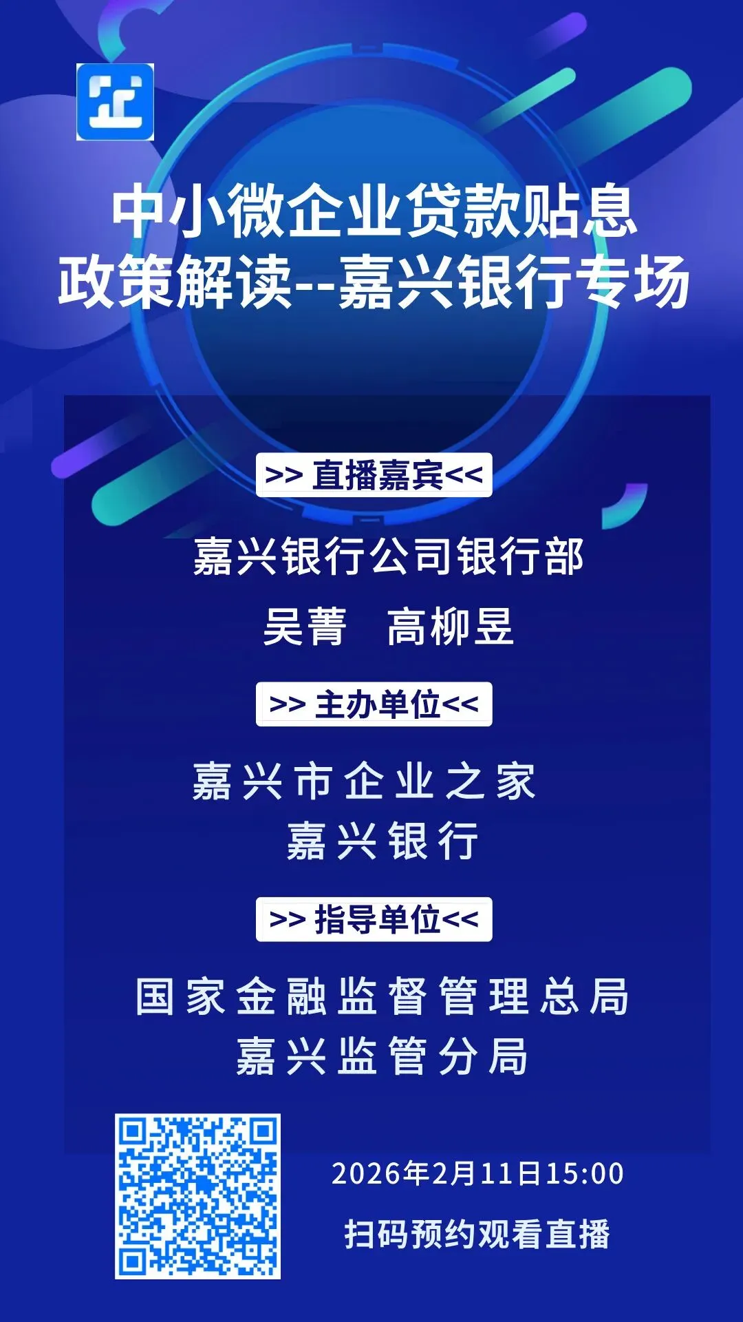 为帮助企业用好政策红利,嘉兴银行联合嘉兴市企业之家,带来「中小微企业贷款贴息政策解读——嘉兴银行专场」直播。