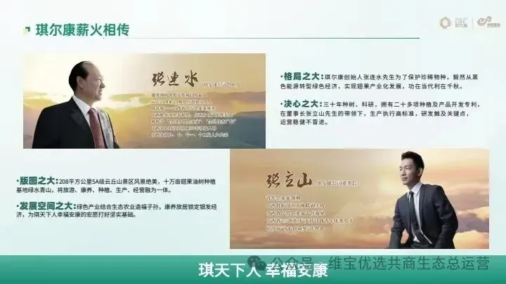 回顾24年发展历史,琪尔康从创立之始一步一步走来,不断完善翅果产业基础设施,构建了完整的翅果产业链,并搭建了完善的人才队伍,在市场开拓上不断创新,勇毅前行。自2016年进军直销行业以来,琪尔康随行业跌宕起伏,却始终保持初心使命,规范运营,稳健发展,在行业中树立了良好的口碑,是一家受人尊敬的公司。