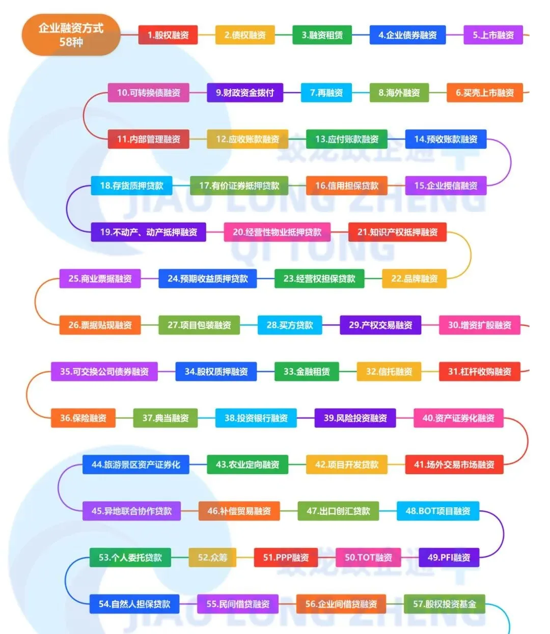 企业的经营离不开资金支持,前面很多文章都对各类融资进行介绍如房产抵押贷款,应收账款融资等等,以及参与供应链融资、借助票据、保理等形式进行融资,如果企业有大量有价值的数据,可以通过数据资产入表,进行融资,当然还有熟悉专利融资。不论哪种融资,目的都是可以拿到钱,助力企业更好的发展;对于各种融资方式,今天给大家整理常见的58种企业融资方式希望能对您有所帮助!