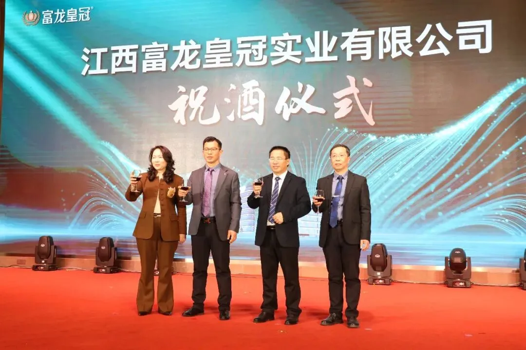 富龙皇冠董事长温世承、总裁温世通、副总经理温世豫、营销总经理严玉平共同上台祝酒,与全场领导、嘉宾和员工共庆盛典。