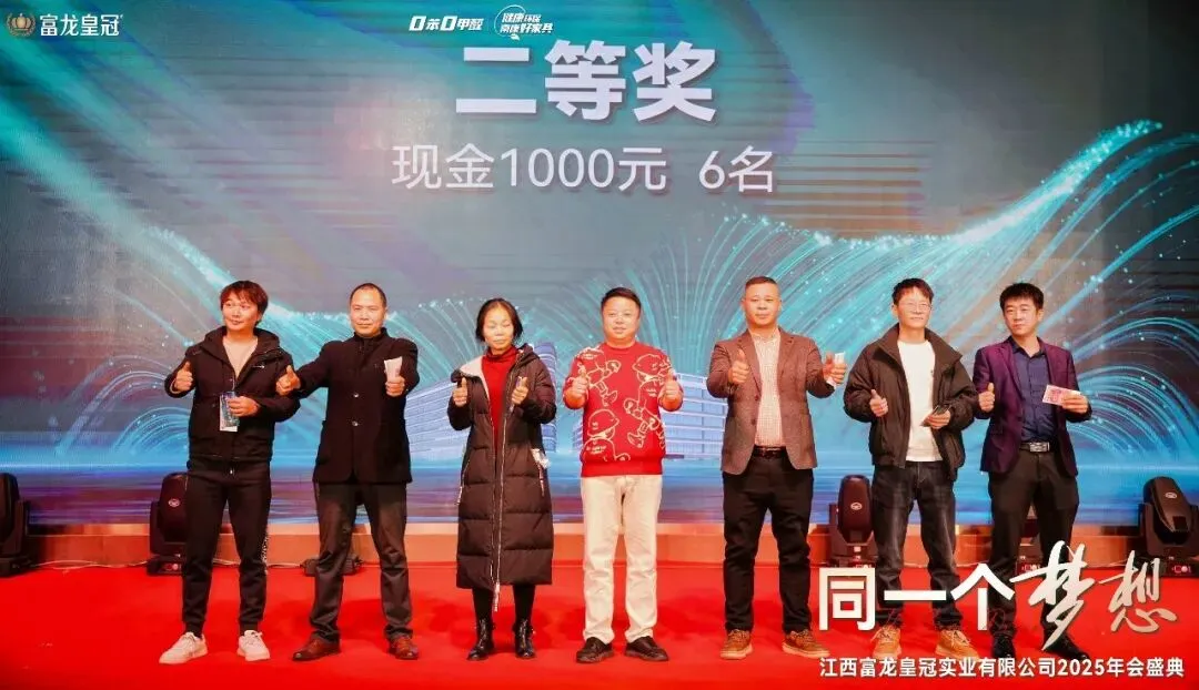 2月3日,“同一个梦想”富龙皇冠2025年会盛典在南康万佳酒店盛大举办。省家具协会会长刘伟,南康区家具协会会长罗海龙,省家具协会执行会长顾建厦,富龙皇冠董事长温世承、总裁温世通、副总经理温世豫、营销总经理严玉平,南康区家具协会常务副会长曾庆宇、邓旺强、陈贤来、伍复勇、邹锦斓,秘书长杨剑,中国工商银行南康支行行长俞福忠等银行代表,奇点势能(江西)科技有限公司董事长荣秀丽等供应商代表,自媒体达人,以及现场千名员工共同为富龙皇冠2025年取得的荣耀成绩庆祝。