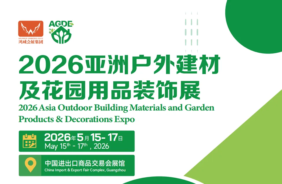 2026 年 5 月 15-17 日,广州琶洲・中国进出口商品交易会展馆,2026 亚洲户外建材及花园用品装饰展邀您共赴户外生活产业盛宴,携手开拓绿色、智能、多元化的全球户外建材与花园用品新市场!