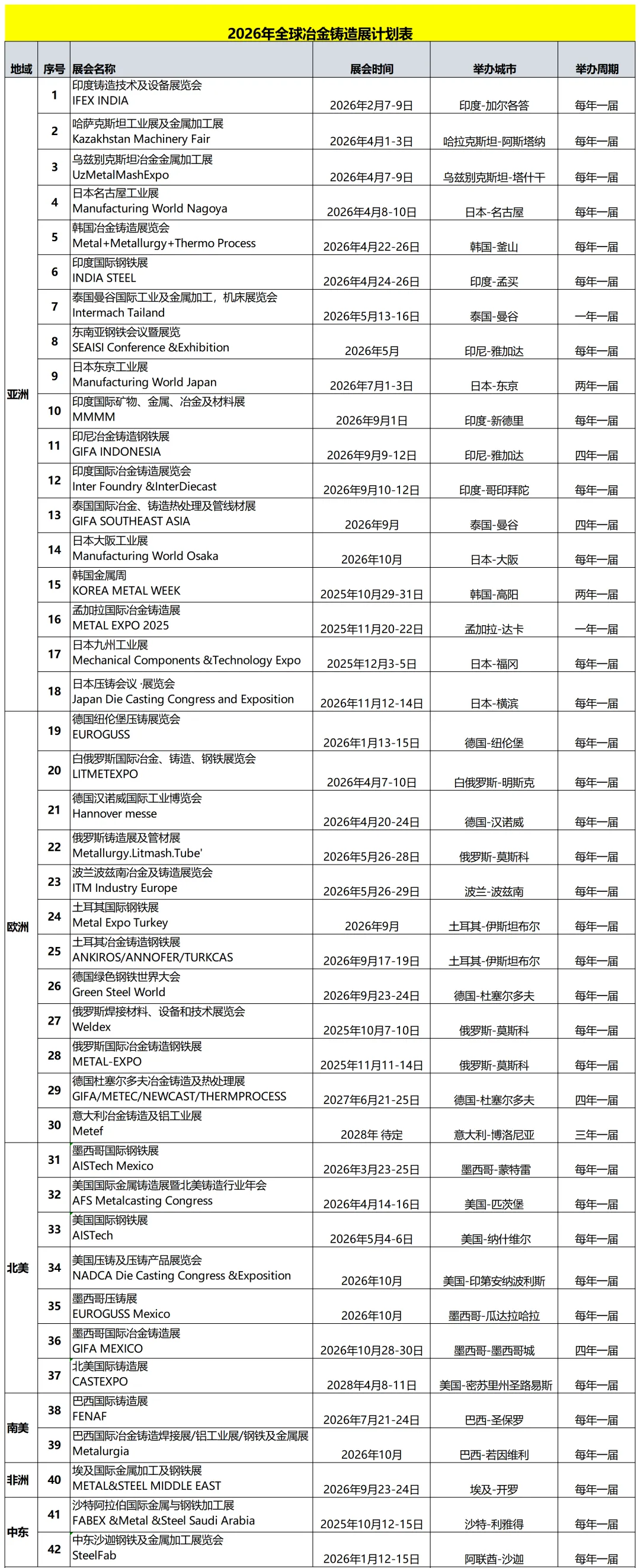 2026年全球冶金铸造展计划表