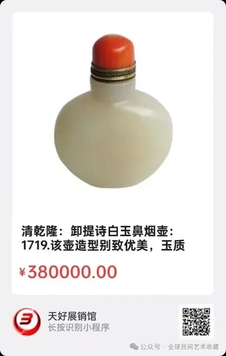 清乾隆:卸提诗白玉鼻烟壶:壶高6宽4.6厘米:该壶造型别致优美,玉质洁白,雕刻字体属于管革体雕工精细优美,掏堂精细规范是标准的皇室用品!包浆厚重开门到代!全美品!从卸提诗的内容就知道是一件难得的乾隆皇帝尝给守封彊大史的鼻烟壶!来源1719.V.