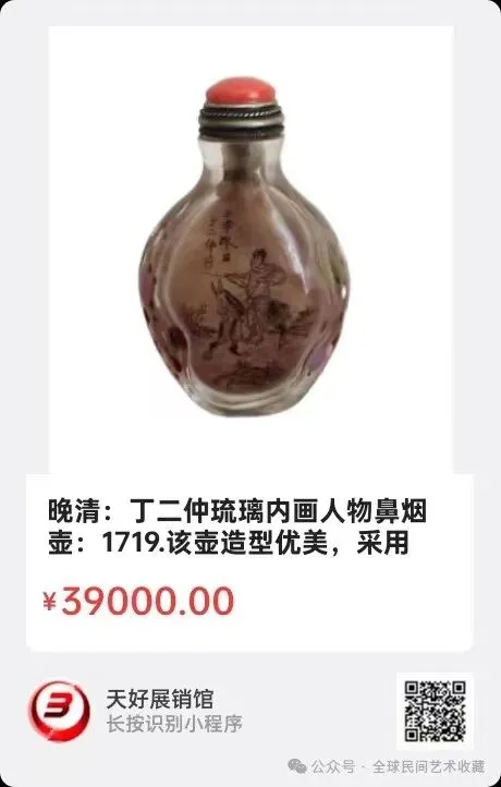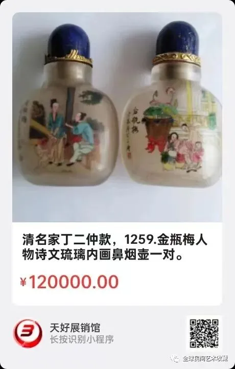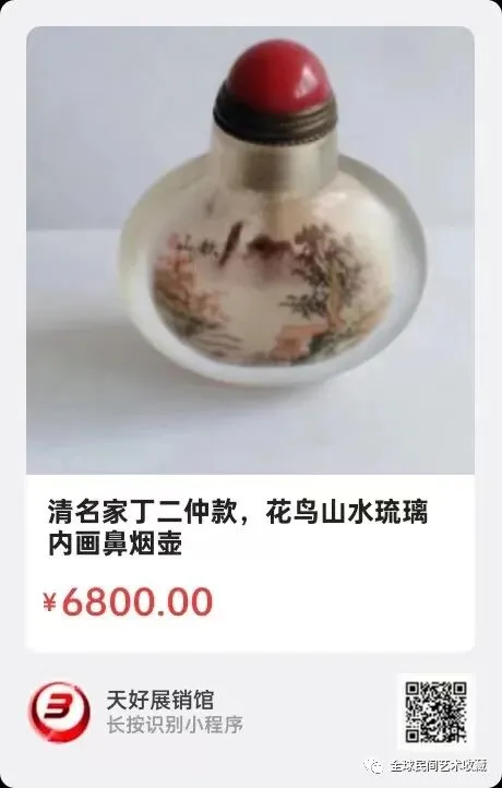 晚清:丁二仲琉璃内画人物鼻烟壶:壸高7厘米,该壶造型优美,采用琉璃内山水画,画工精细立体感强,包浆厚重自然开门到代!全美品!是件不多见的名家鼻烟壶!来源1719.V.