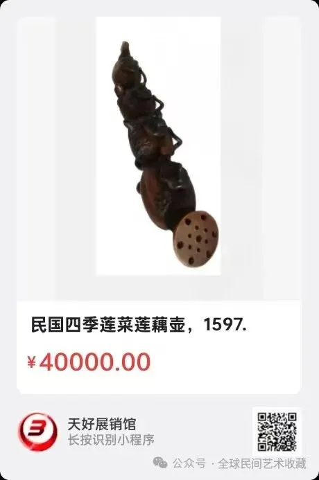 网络展销地址:《全球民间艺术收藏》《天好文化》,《天好展销馆》前二个微信公众号每期发布展讯,进《天好展销馆》购买。