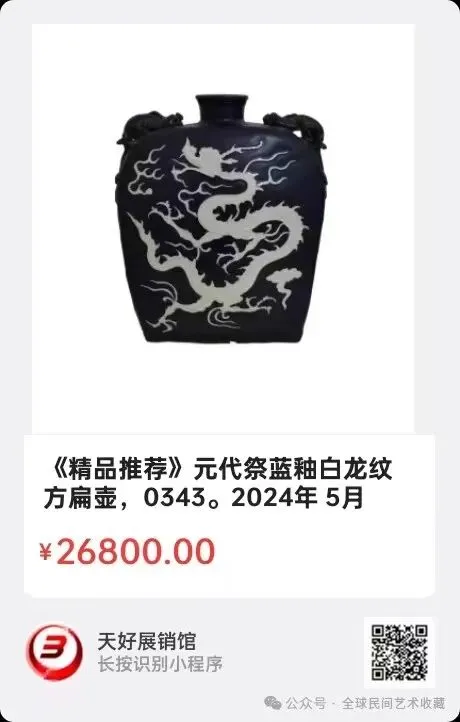 元代祭蓝釉白龙纹方扁壶,尺寸:高37、6公分,宽30公分;依据以下图片的特征迹象表明,这件器物应是一件元代祭蓝釉器物,以下图片纯属该器物的真实特征迹象,请老师们依据图片予以鉴评。谢谢!2024年 5月 8日,经天好评审团评审,以6票优势荣登精品榜,获第125期天好海选精品。来源0343.V.