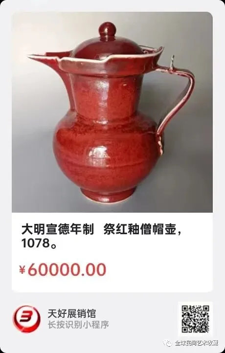 大明宣德年制 祭红釉僧帽壶,规格:高24CM,来源:1078。