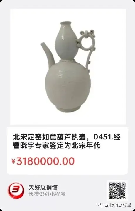 北宋定窑如意葫芦执壶,高25.4cm,口径3.3cm,足径7.7cm,重845克,经曹晓宇专家鉴定为北宋年代真品,来源:0451。V.