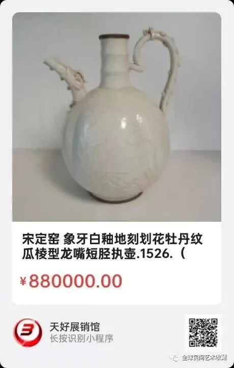 宋定窑 象牙白釉地刻划花牡丹纹瓜棱型龙嘴短胫执壶(底刻~尚食局款)可溢价!易货交流…。来源1526.