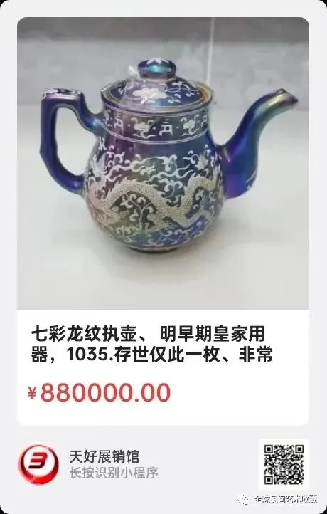 七彩龙纹执壶、 高13公分、明早期皇家用器,存世仅此一枚、非常珍贵。来源:1035.