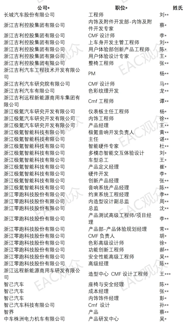 截至目前已报名64人参会,覆盖前瞻技术、产品管理、材料开发、零部件研发、造型设计、内饰研发等全链条岗位;涵盖星越、极氪、博越、几何 、熊猫、帝豪、领克等车型