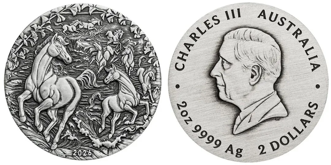 直径40.69mm、含量2盎司、银9999、超高浮雕、铸造1888枚、面值2澳元、售价380美元。珀斯厂造币。