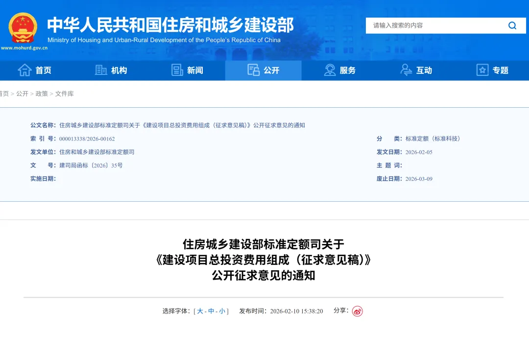 住房和城乡建设部标准定额司2026年2月5日