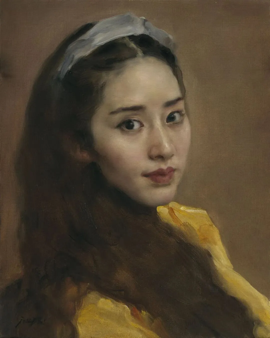 庞茂琨 《扎头带的姿姿》 50×40cm 布上油画 2019年