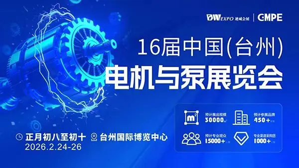 第16届中国(台州)电机与泵展览会将于2026年2月24-26日在台州国际博览中心隆重举行。