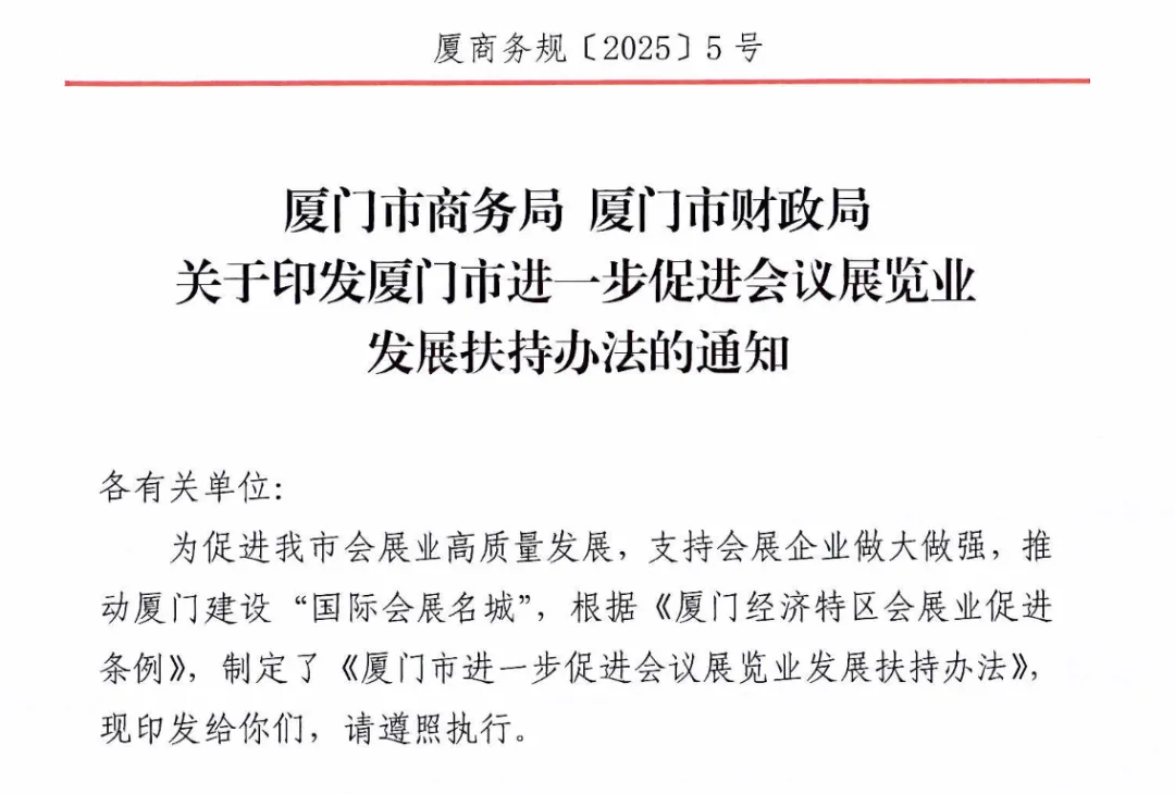 《厦门市进一步促进会议展览业发展扶持办法》