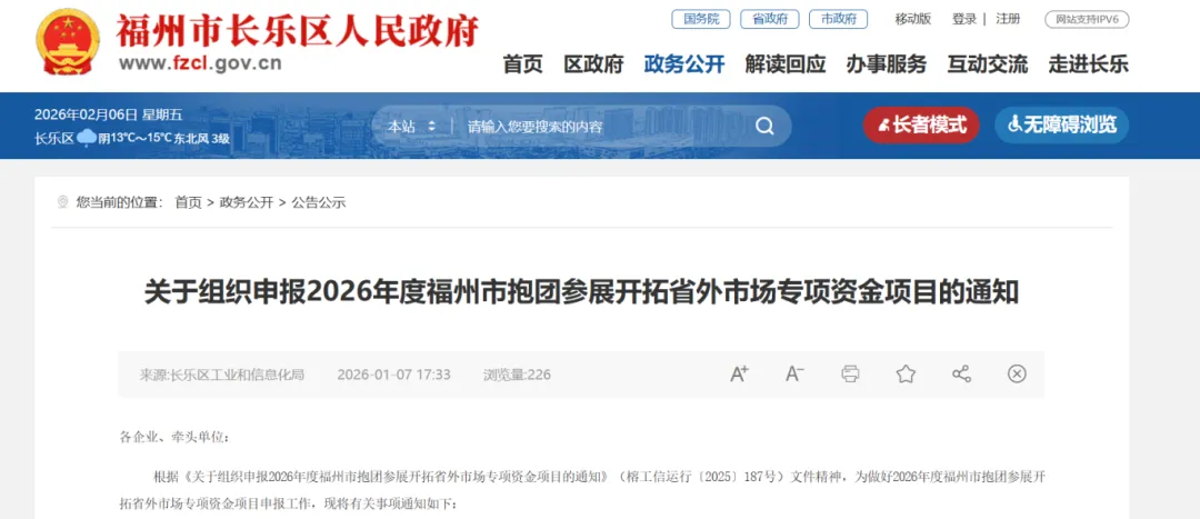 《关于组织申报2026年度福州市抱团参展开拓省外市场专项资金项目的通知》