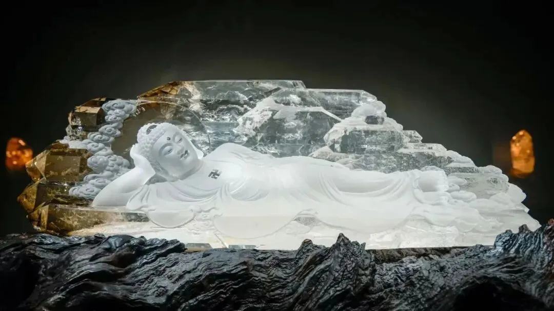 白水晶卧佛《四象成道》由一块大型原石雕刻而成。