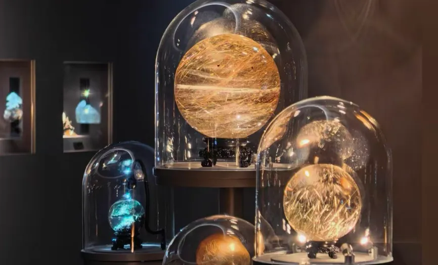 展览汇集了浙江省工艺美术大师、中国玉石雕刻大师、杭州工匠翁祝红的水晶艺术珍品,共计100余件/套,通过“原石本纪”“琢磨之路”“万相澄明”“行者无疆”四个篇章,系统构建了从材料认知、工艺探索到精神表达的水晶艺术展示框架,生动诠释了工艺美术从“技艺本位”向“观念表达”的深刻演进。