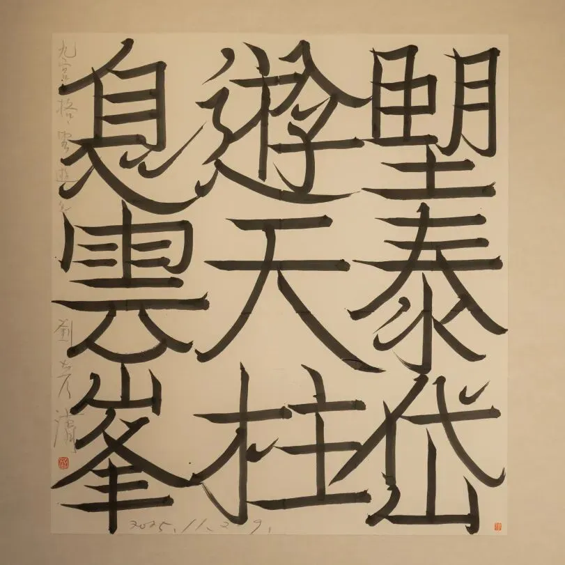 艺术家刘彦湖的工作是在传统与当代两个不同的向度上展开的。在传统方面,通过他对中国古文字学的深厚修养,突破了唐代人所建构的书法理论框架,即从魏晋传统拓展到从文字创生之初的整个先秦,从而实现了一个贯通古今的整全性书法传统的重建。这种重建突破了一般意义上对书法传统的认知,代表着学术前沿的最新成果。在书法当代性的探索中,他能清醒地认识到日本现代书法只专注于形式的局限性,从而重新审视文字与语言的内在关联,重新回到文本、修辞与观念的表达,成为在日本现代书法的范围之外,开拓出一条新的道路。