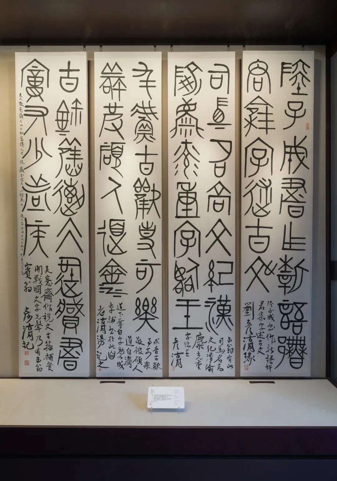 刘彦湖,六国文字四屏,纸本水墨,209×45cm×4,2025年