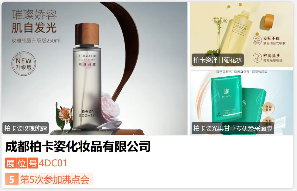 柏卡姿专注植物护肤17年,首批入驻天猫的护肤品牌,旗舰店70万粉丝,是化妆品芭薇工厂的上市股东,自建高端工厂。爆款纯露曾成为天猫品类首位。在中国最广的大马士革玫瑰基地建设柏卡姿玫瑰种植园,不仅如此,还在河南等地种植洋甘菊,迷迭香等植物,产品可溯源。柏卡姿产品被抖音top主播彩虹夫妇,淘宝曾top主播薇娅,主持人李湘,明星林依轮,秦岚强力推荐!-展位号:4DB01-