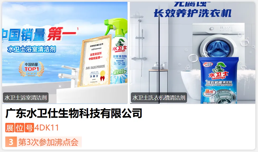 水卫士是中国***植物基除垢清洁品牌,代言人是国民媳妇-海清,年销20亿+,荣获多个中国销量***(洗衣机槽清洗剂,浴室清洁剂,校服净,洗碗凝珠)。水卫士自建工厂占地面积40000㎡,10***无尘车间。水卫士是一家集研产销于一体的创新国货清洁日化品牌,专注研发生产和销售清洁产品,国内领先植物基除垢家庭清洁品牌。-展位号:4DE25-