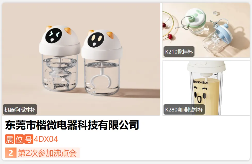 楷微电器科技有限公司是一家集研发、设计、生产、销售于一体的专业制造企业,主要生产家用电器及其配件,电子产品、五金制品、模具、塑胶制品、硅胶制品、橡胶制品、货物或技术进出口的公司。楷微与超百家国内外品牌、IP合作其中包括汤臣倍健,蒙牛,江中,迪士尼等品牌定制经验丰富,产品品质深受欧美、日韩等国家客户信赖。-展位号:4DB11-